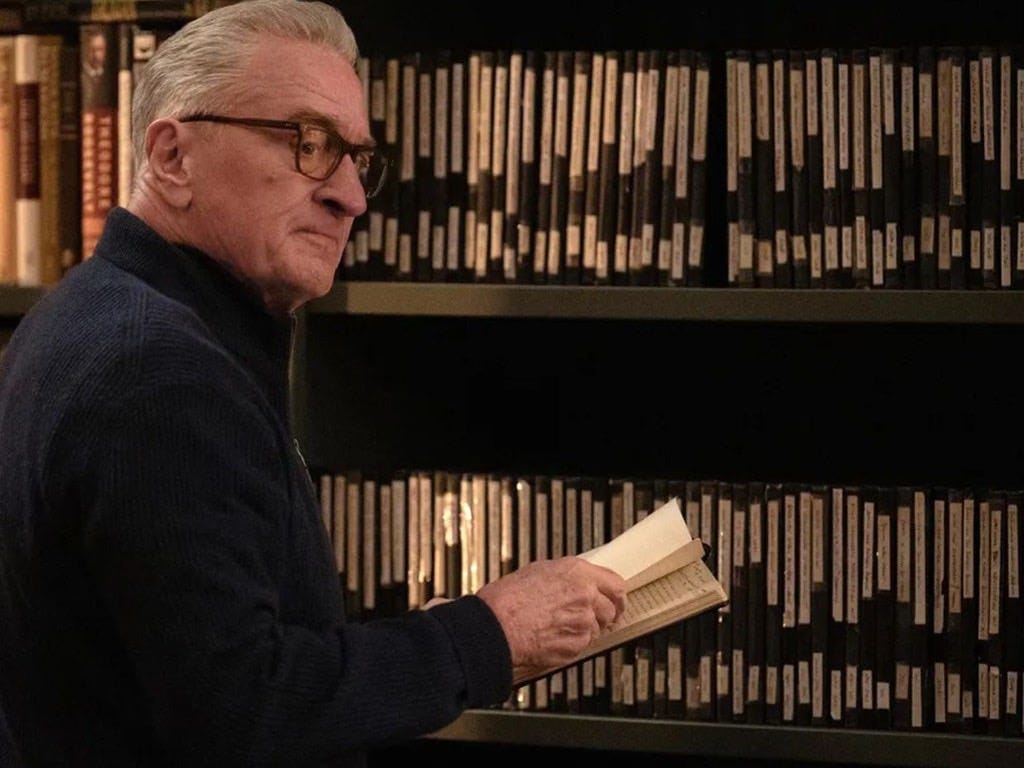 One of the first scenes involves President De Niro (not the character’s name, but c’mon, it’s De Niro) in the swankiest office you can imagine. Fireplace, upholstered chairs, wall-to-wall book shelves. Light and space. Mahogany for days.1 The only thing missing is one of those nifty ladders on rollers to access the top shelf.2 De Niro is working on a memoir, and during the scene he stands before a shelf filled with used notebooks. He wants to confirm some obscure detail from his past, but all I could think was: “Damn, Bobby—you actually use your notebooks?!”