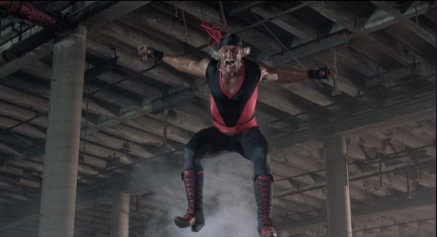Imagine creating a movie as bad as No Holds Barred and deciding to double down by bringing Zeus out of the movie and into the WWF. Not to fight Rip—the character Hulk Hogan played in the film—but to fight Hogan himself. Which only further underscores the point I made at the top: this movie would be so much more interesting if it purposefully blurred the lines between fiction and reality. Something like The Blair Witch Project with bodyslams.