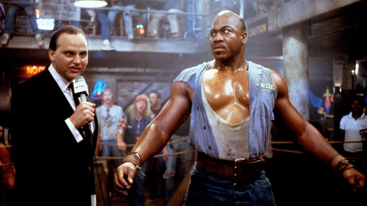 Between his sheer size, ferocity, and the lethal combo of a lazy eye and unibrow, Zeus (aka Tommy Lister Jr., aka Deebo) is legitimately terrifying. He wins a series of matches against other big men, including one guy who swings an enormous hammer. The only rule in No Holds Barred is that there are no rules.