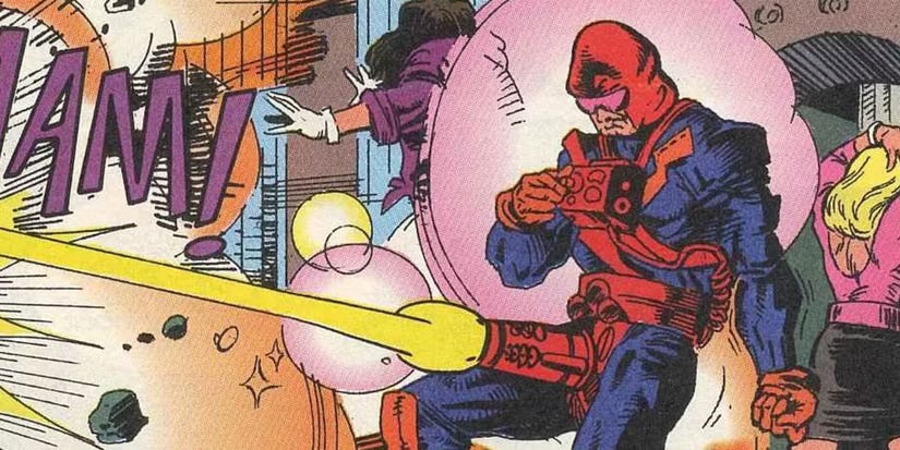 The gladiators who hunt Arnold are an assortment of dime store villains. WWF by way of Mad Max and Saturday morning cartoons. The most ridiculous comic book villain ever is a guy named Codpiece, who uses an enormous phallic barrel to further his evil aims. His backstory is that a girl in his school told him he was too small, which he took as a slight against his manhood. Ridiculous, but Codpiece has more pathos than any of the dudes chasing Arnold.