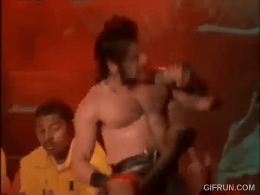That buckle has gotta add several pounds to the belt, which makes all that hip movement even more impressive. No wonder Glenn is so ripped! He’s constantly working out just walking around with that thing on.